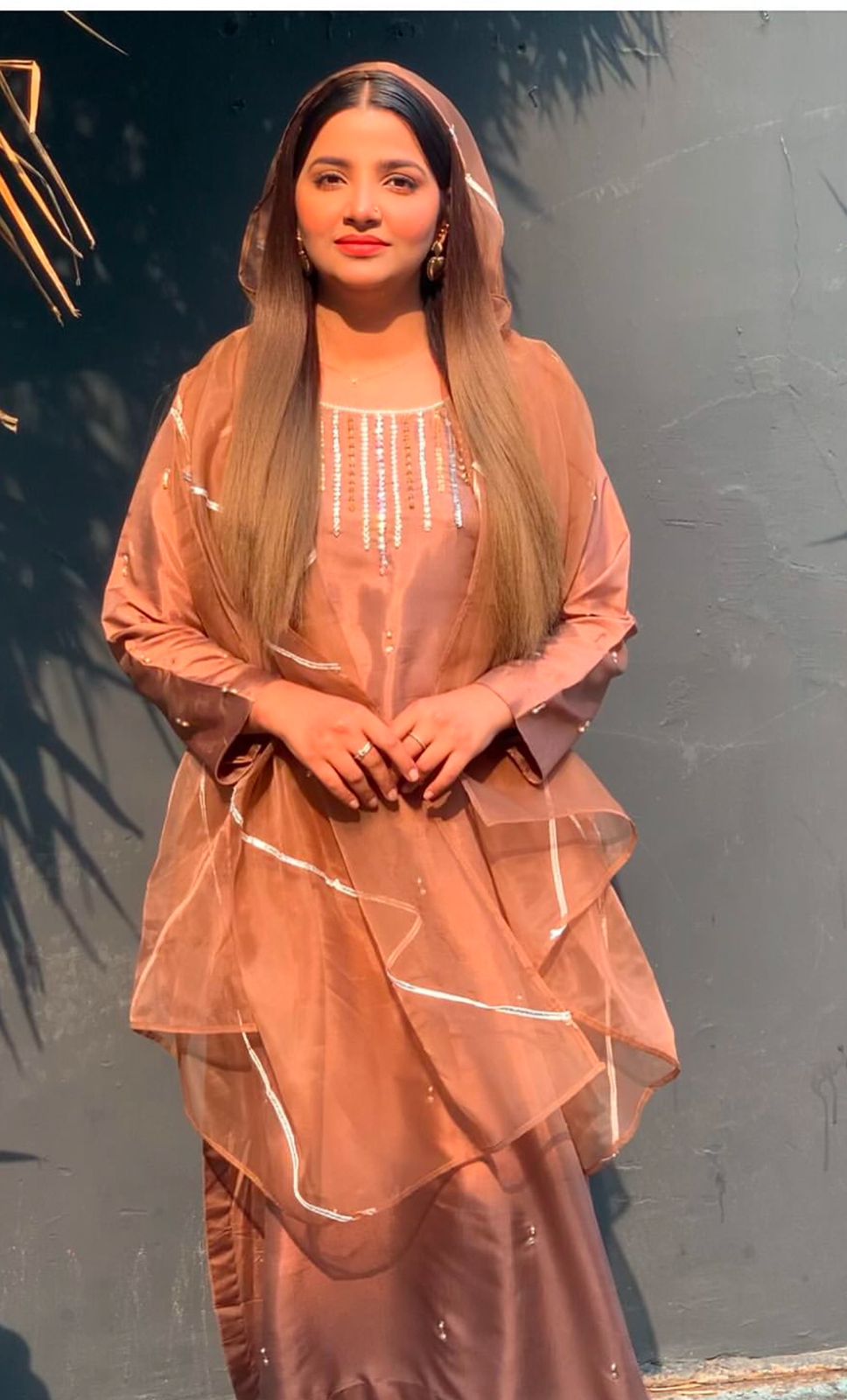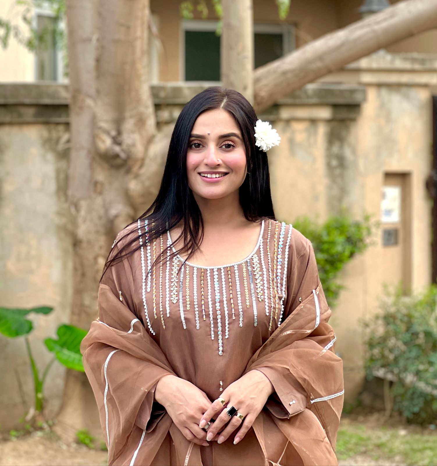 Anaya Dress neck with hande made work,Organza Duppta & Trouser