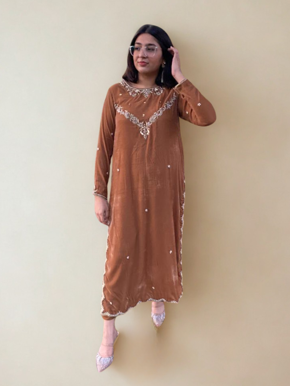 Embalishment detail:Neckline handwork stone & pearl & kora dapka