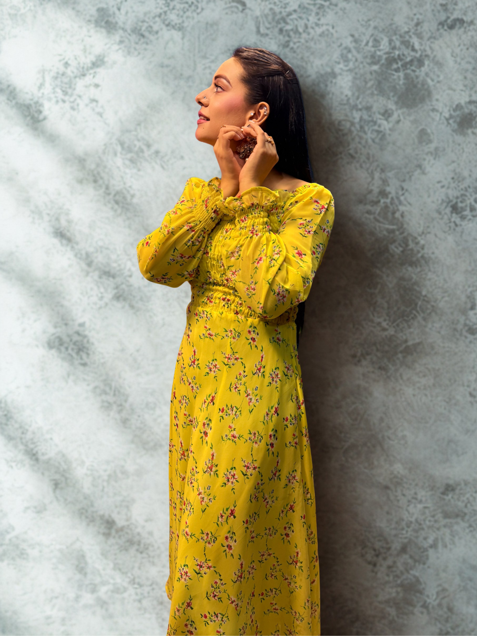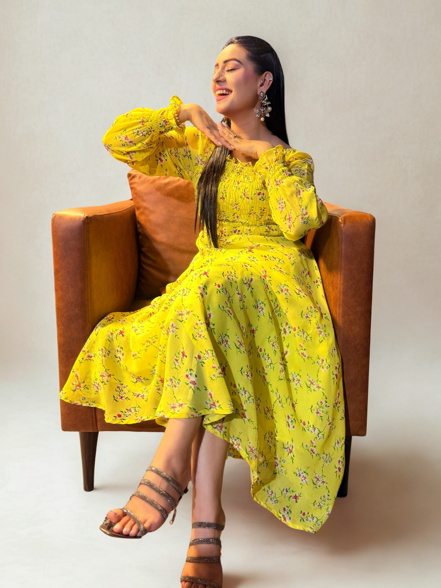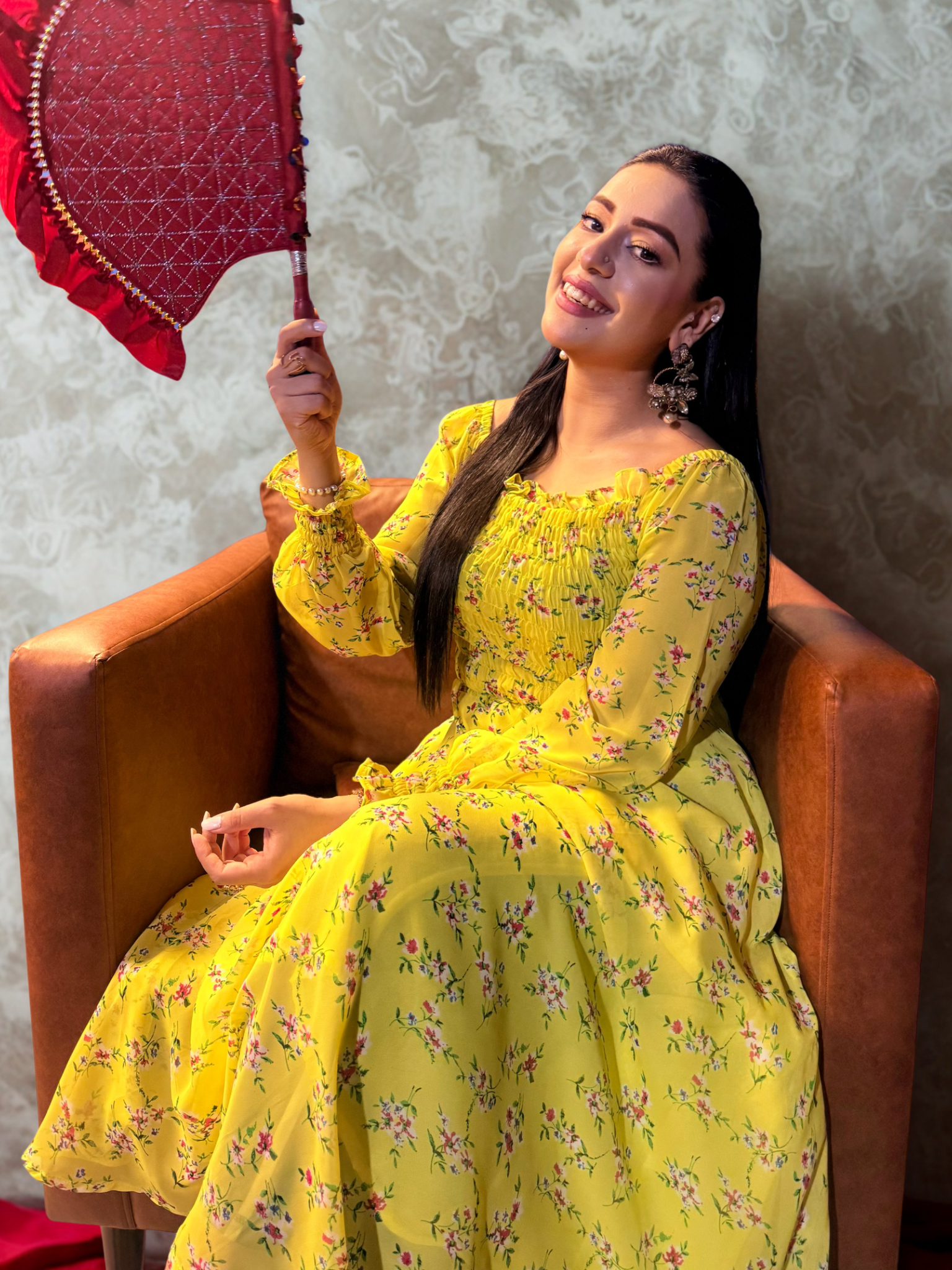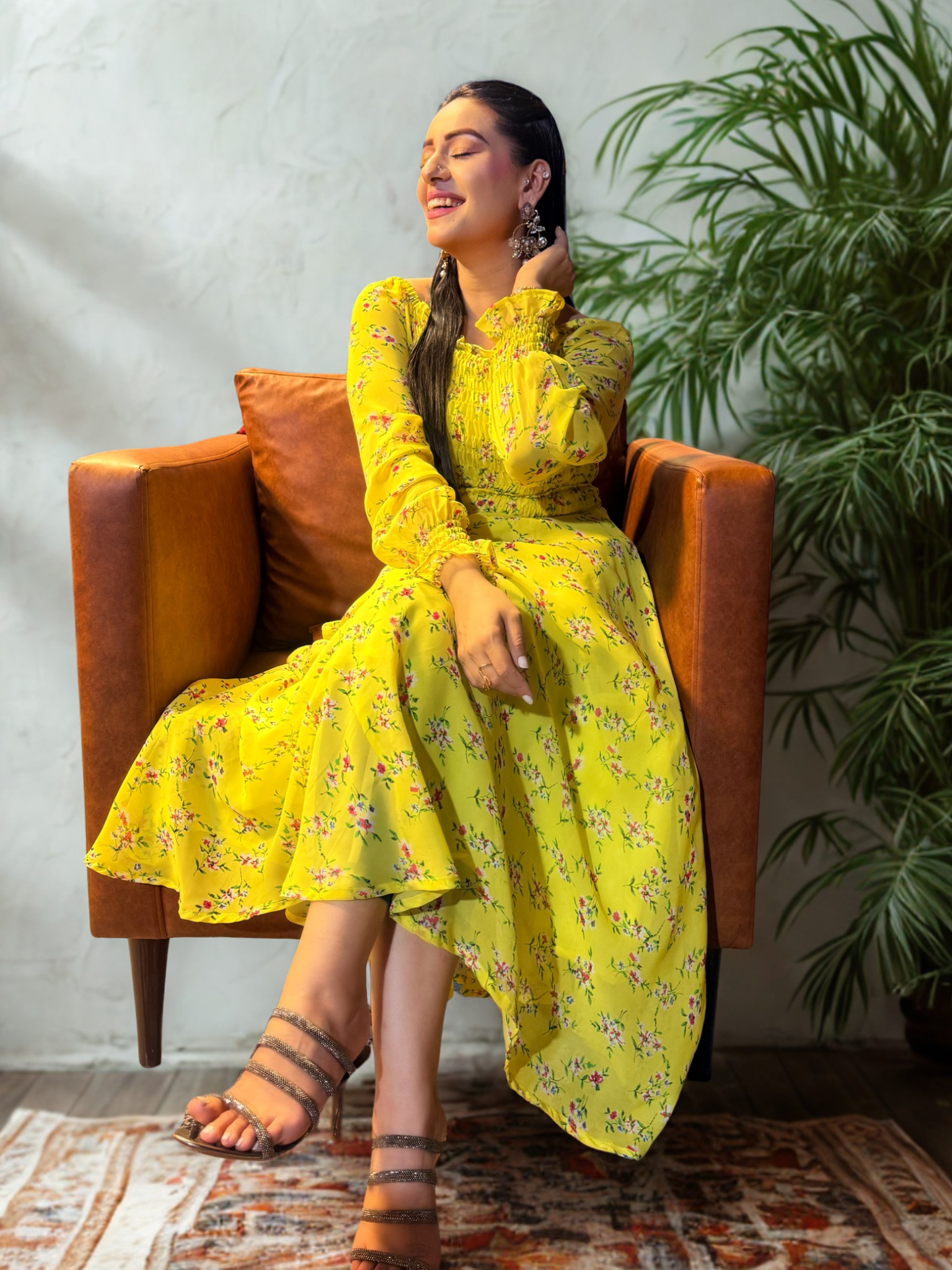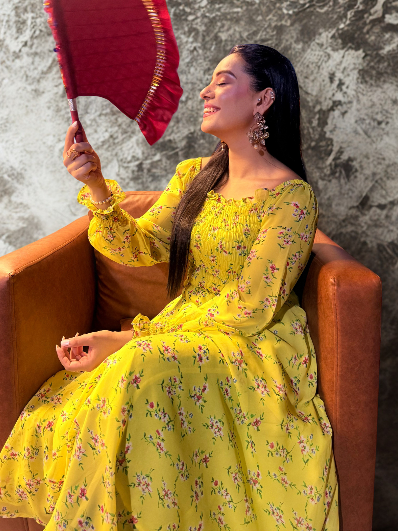 Elevate your wardrobe with the Flowers Chiffon Smoked Frock SA-872, crafted from delicate chiffon for a light and graceful fit. Its intricate smoked detailing adds texture and refinement, while the floral design brings a subtle elegance perfect for any sophisticated occasion. This frock blends comfort with classic style, ensuring you stand out with understated charm.