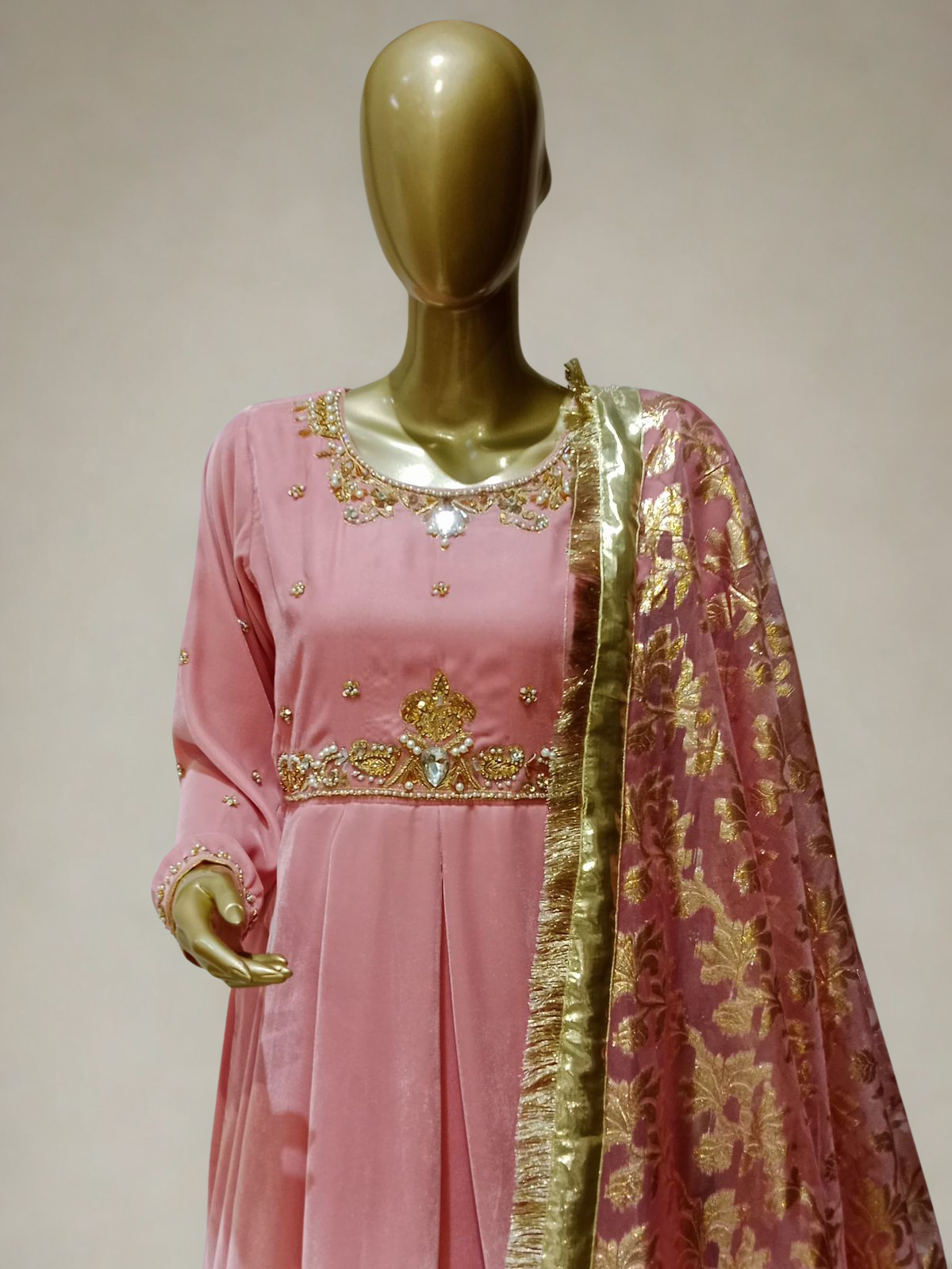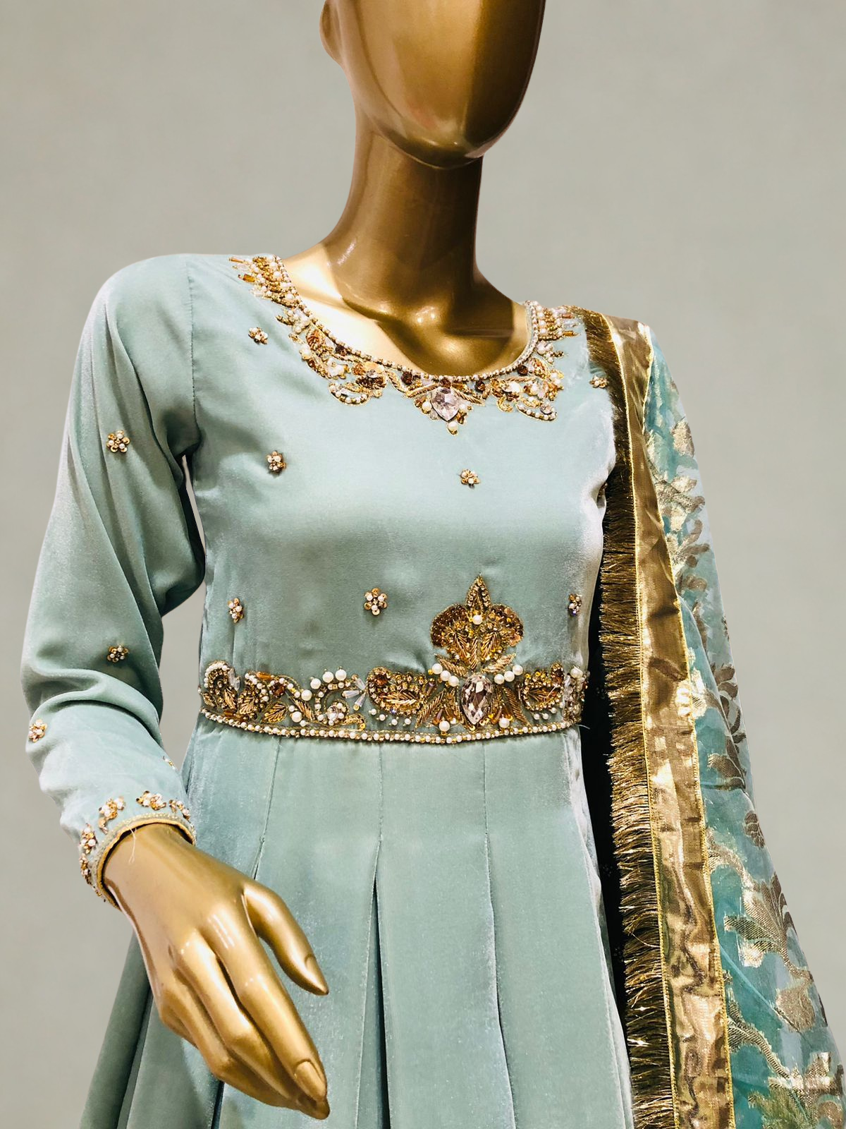 Top Style:Velvet body with handwork stone pearl Umbrella Style with Border Lace