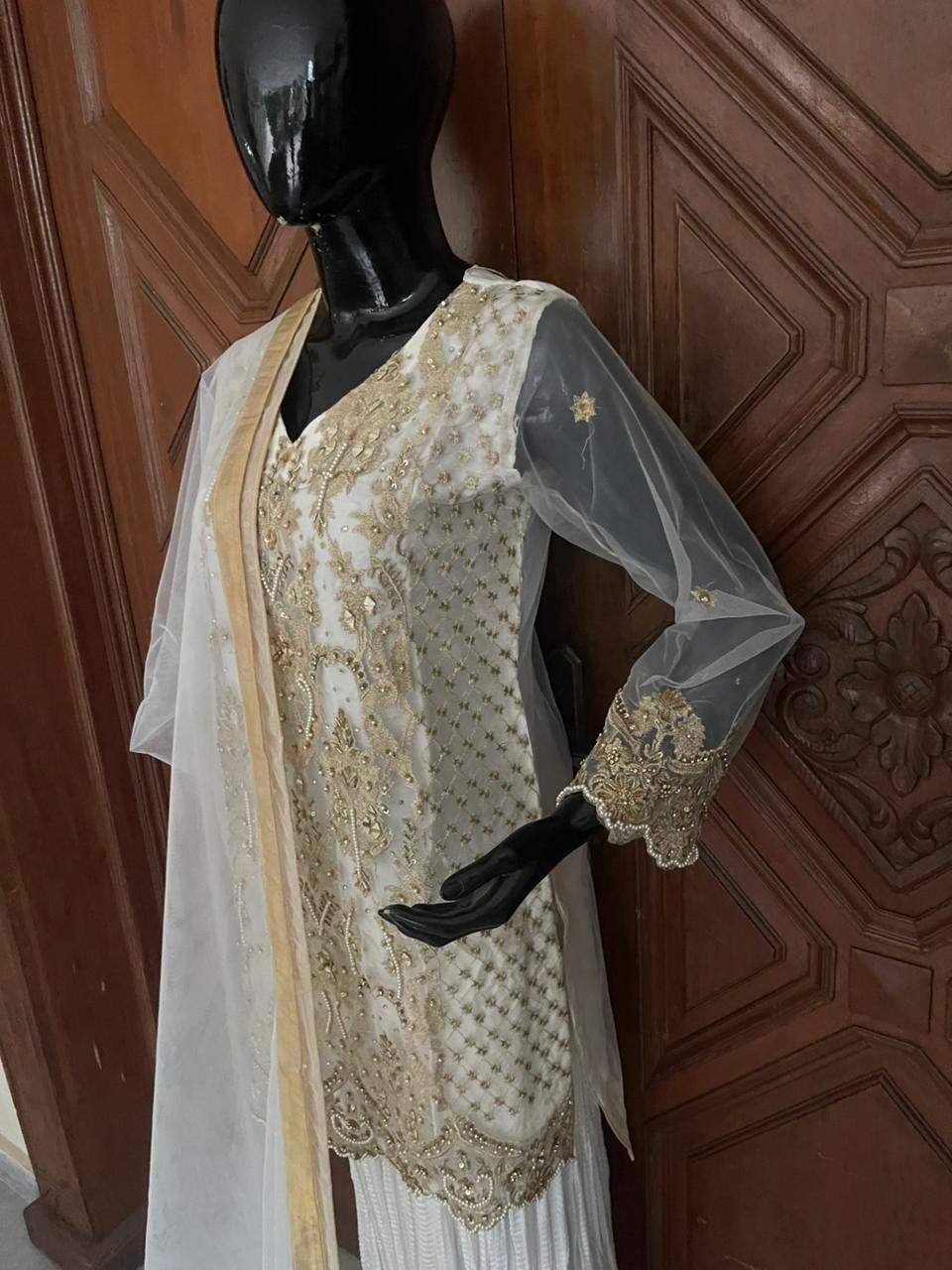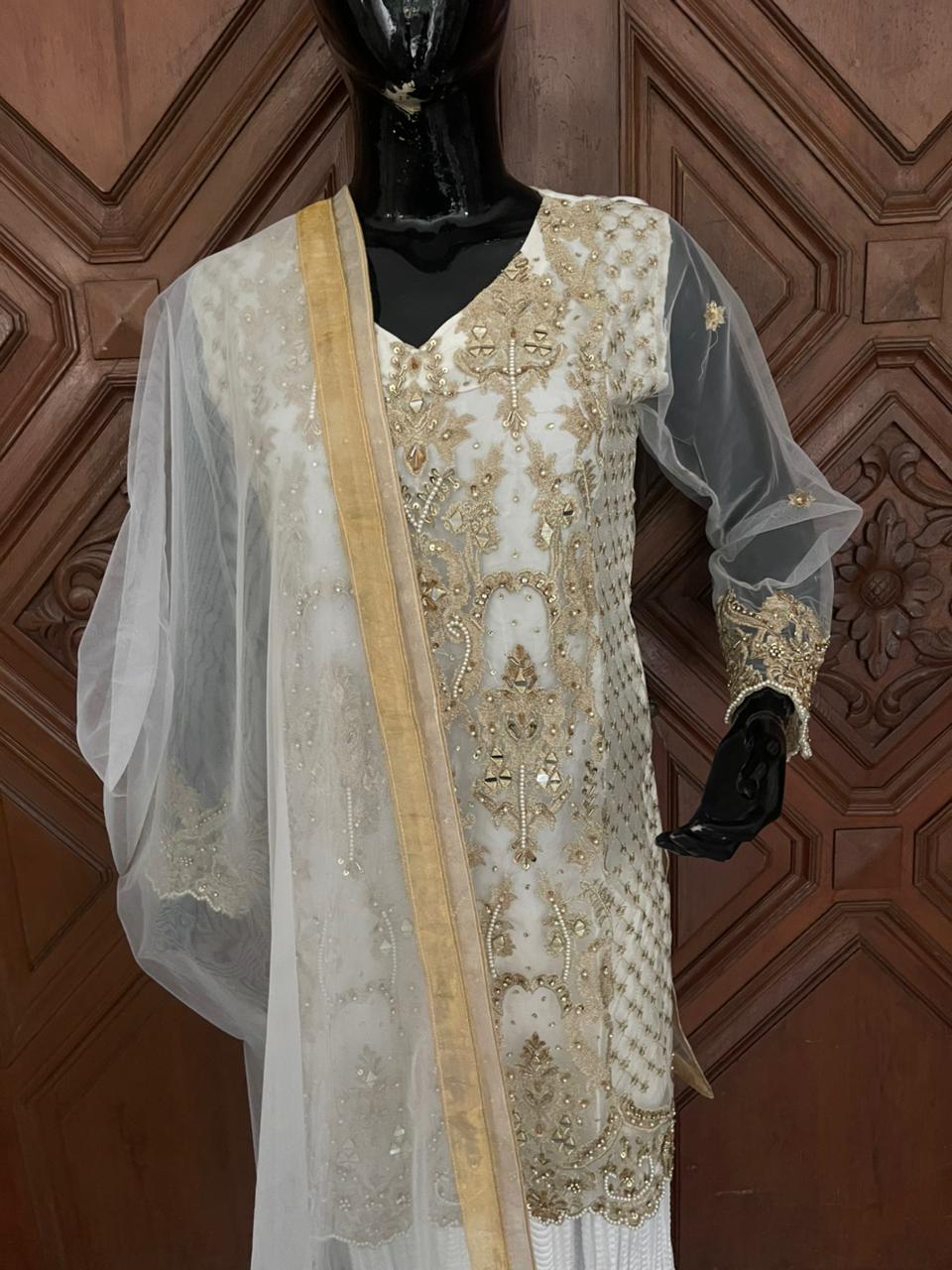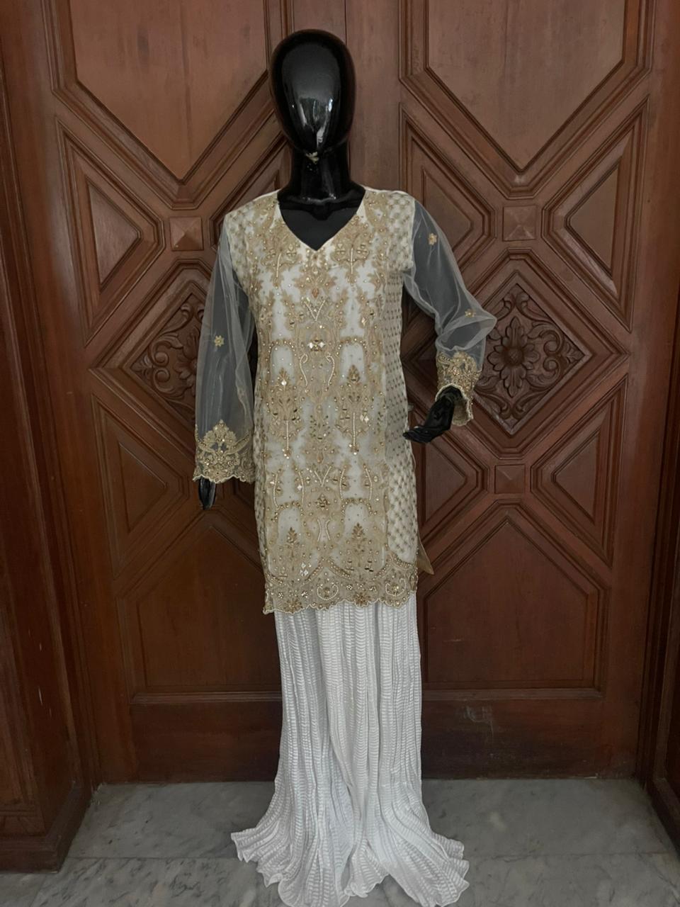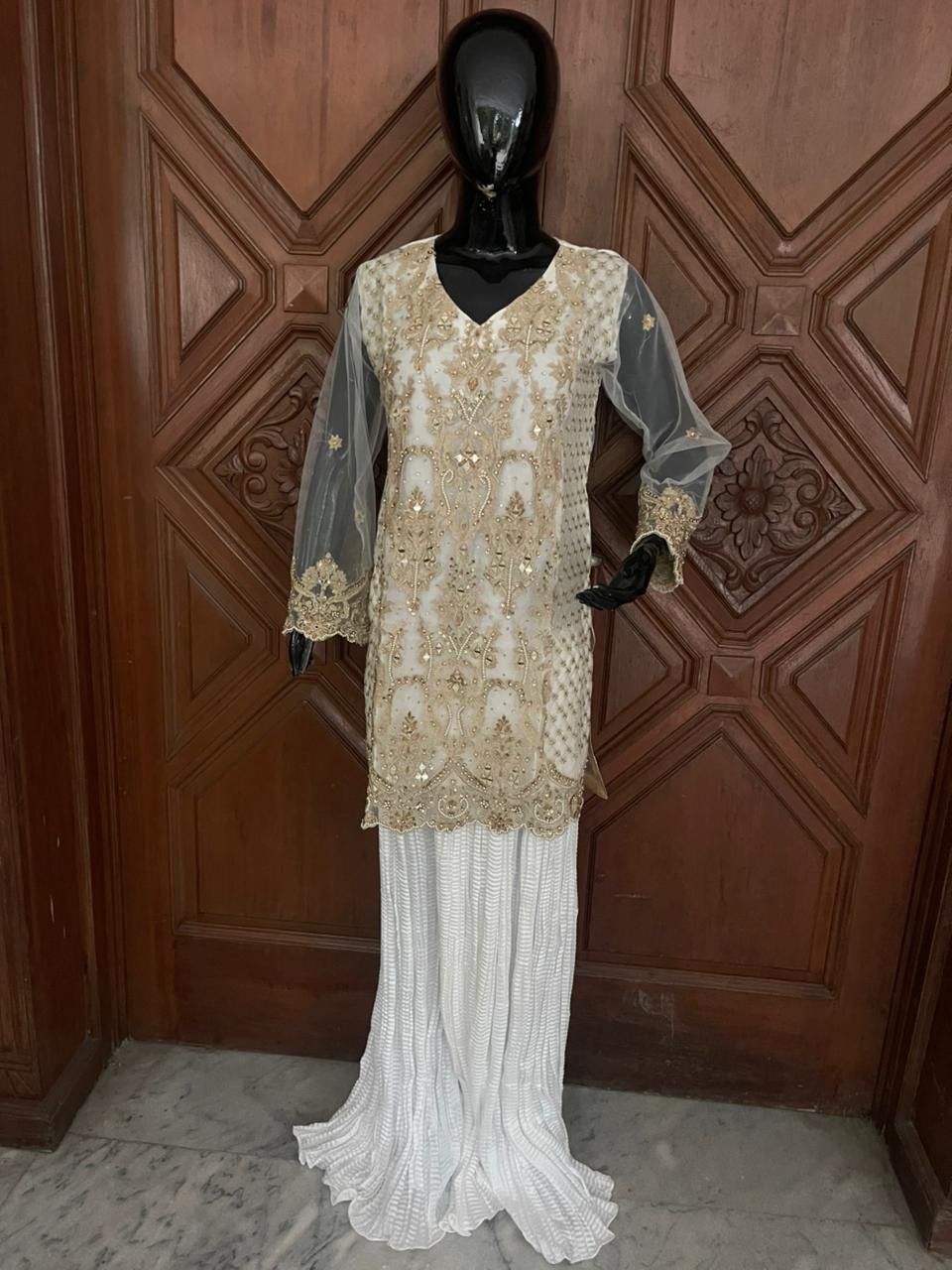Top Style:Embroidery with mirror & handwork & crush gharrara