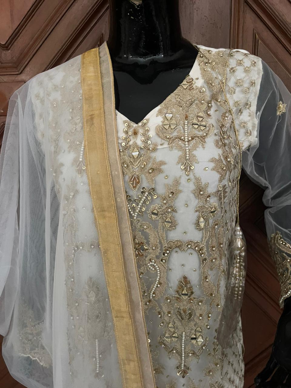 Duppata fabric:Net with golden piping