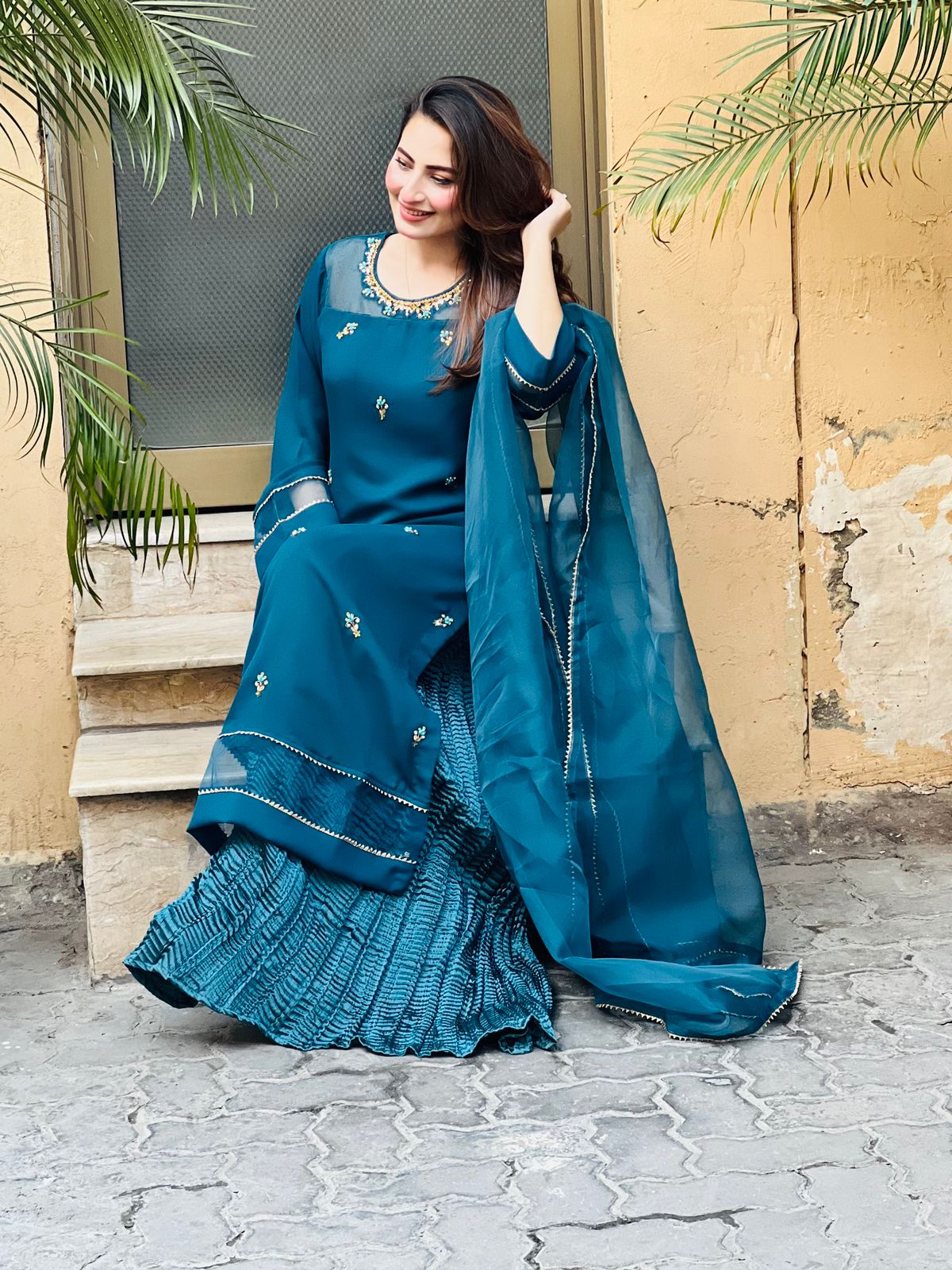 Duppata fabric:Organza with samosa lace both side