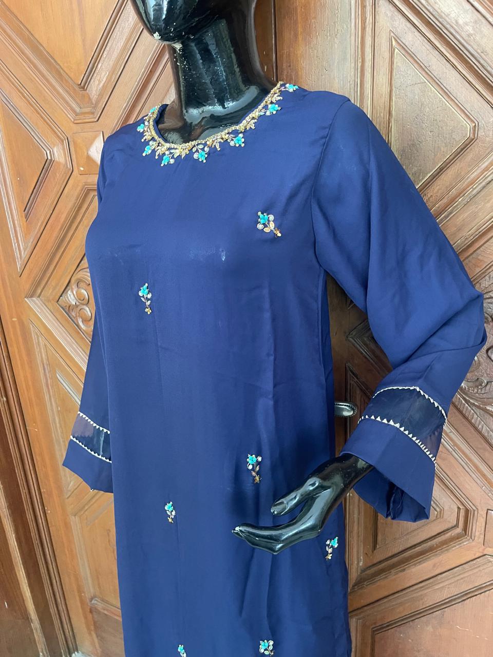 Embalishment detail:Neckline Handwork with stone pearl