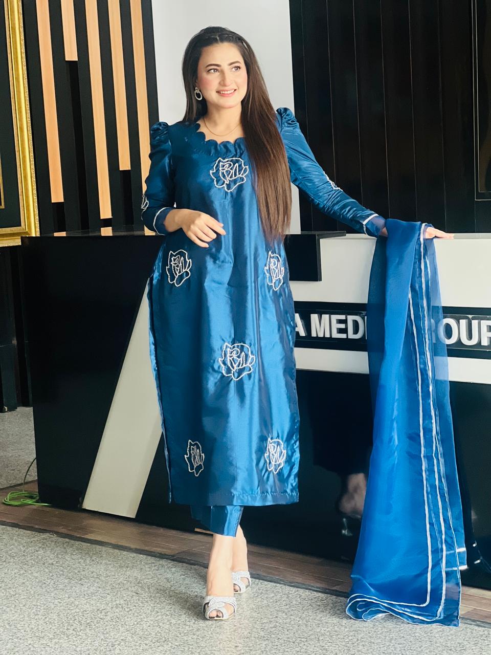 Elevate your wardrobe with the Tulip Dress featuring exquisite handwork on the shirt and elegant puff sleeves that add a refined touch. This three-piece ensemble includes a delicate organza dupatta and coordinating trousers, combining traditional craftsmanship with contemporary style. Perfect for special occasions, the intricate detailing and luxurious fabrics ensure you stand out with understated sophistication. Experience the harmony of comfort and elegance in every wear.