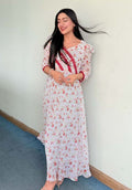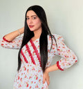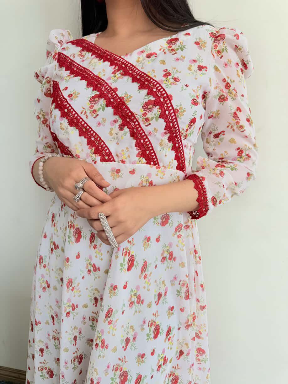 Elevate your wardrobe with this daring Korean chiffon frock, featuring delicate lace detailing that adds bold elegance to your look. The soft lining ensures comfort without compromising style, making it perfect for all-day wear. Designed as a single-piece garment, this frock blends lightweight chiffon with intricate lace to create a statement piece that’s as confident as you are. Step out and captivate with effortless grace and a touch of fearless sophistication.