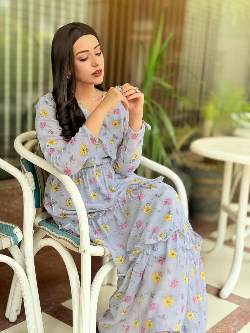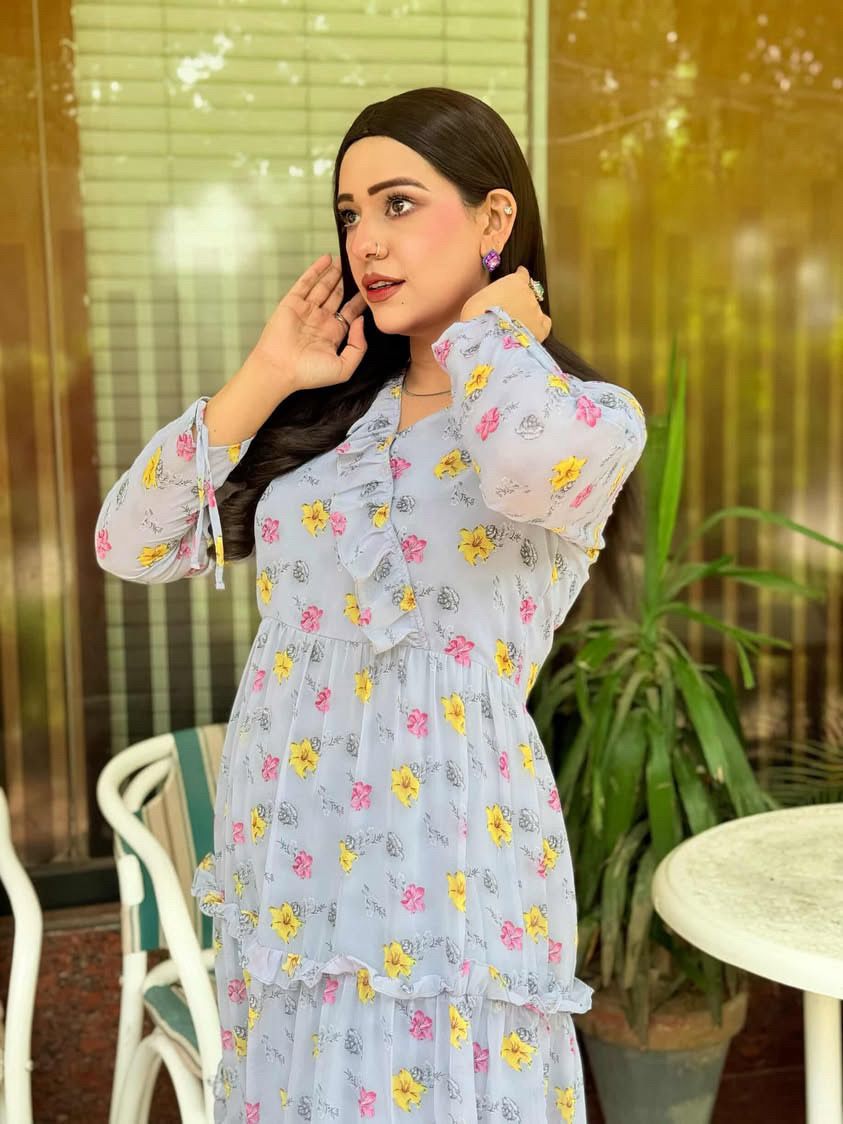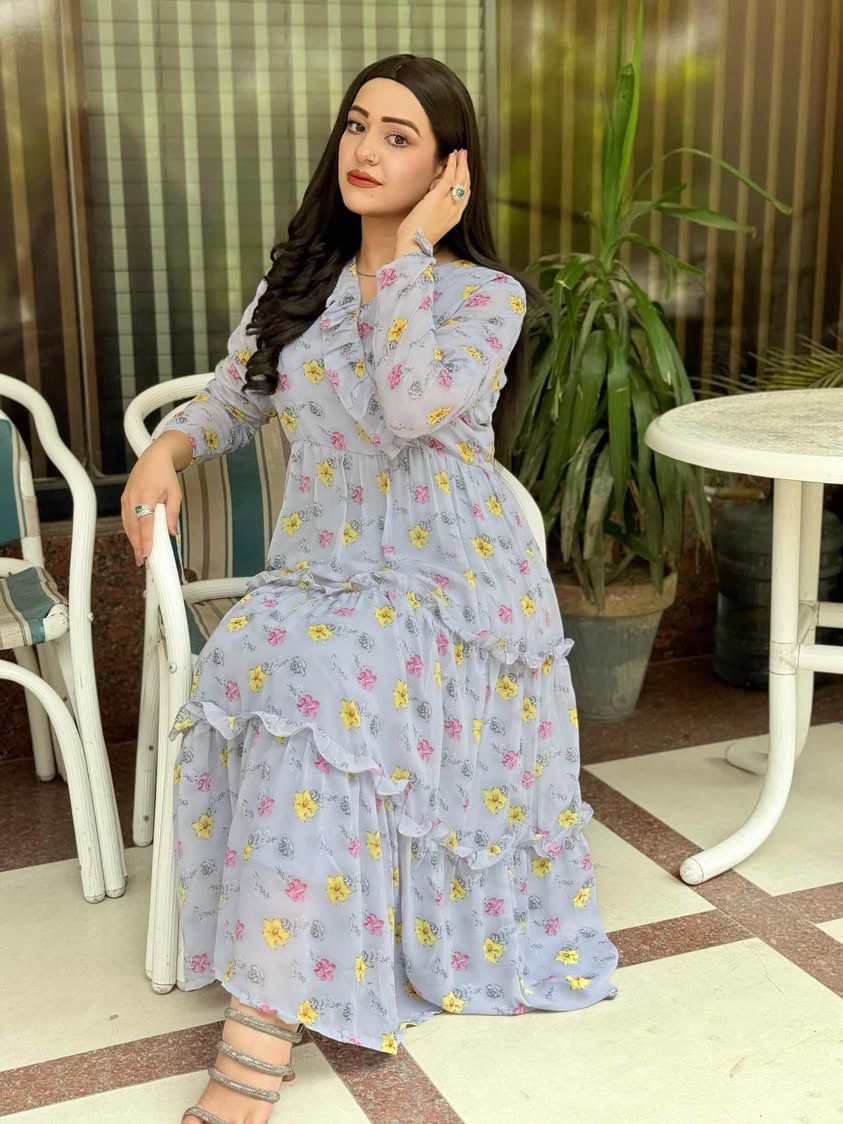 Korean Chiffon Frock With Lace Under Soft Lining Attatched (1 PC)