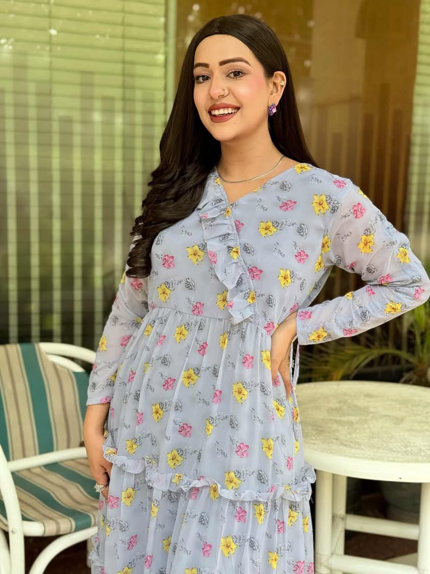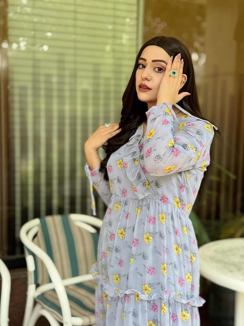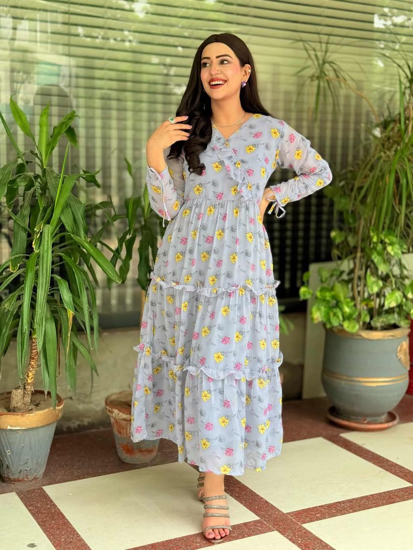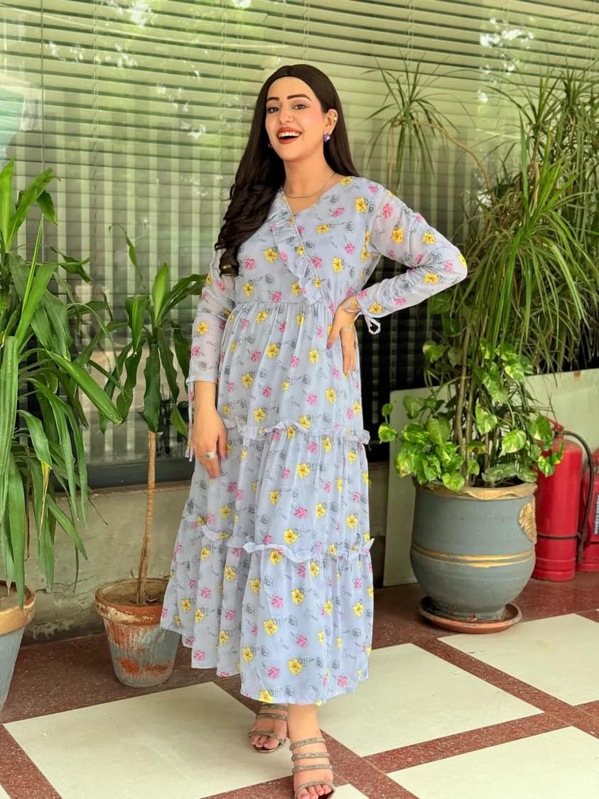 Korean Chiffon Frock With Lace Under Soft Lining Attatched (1 PC)