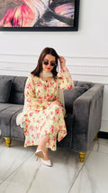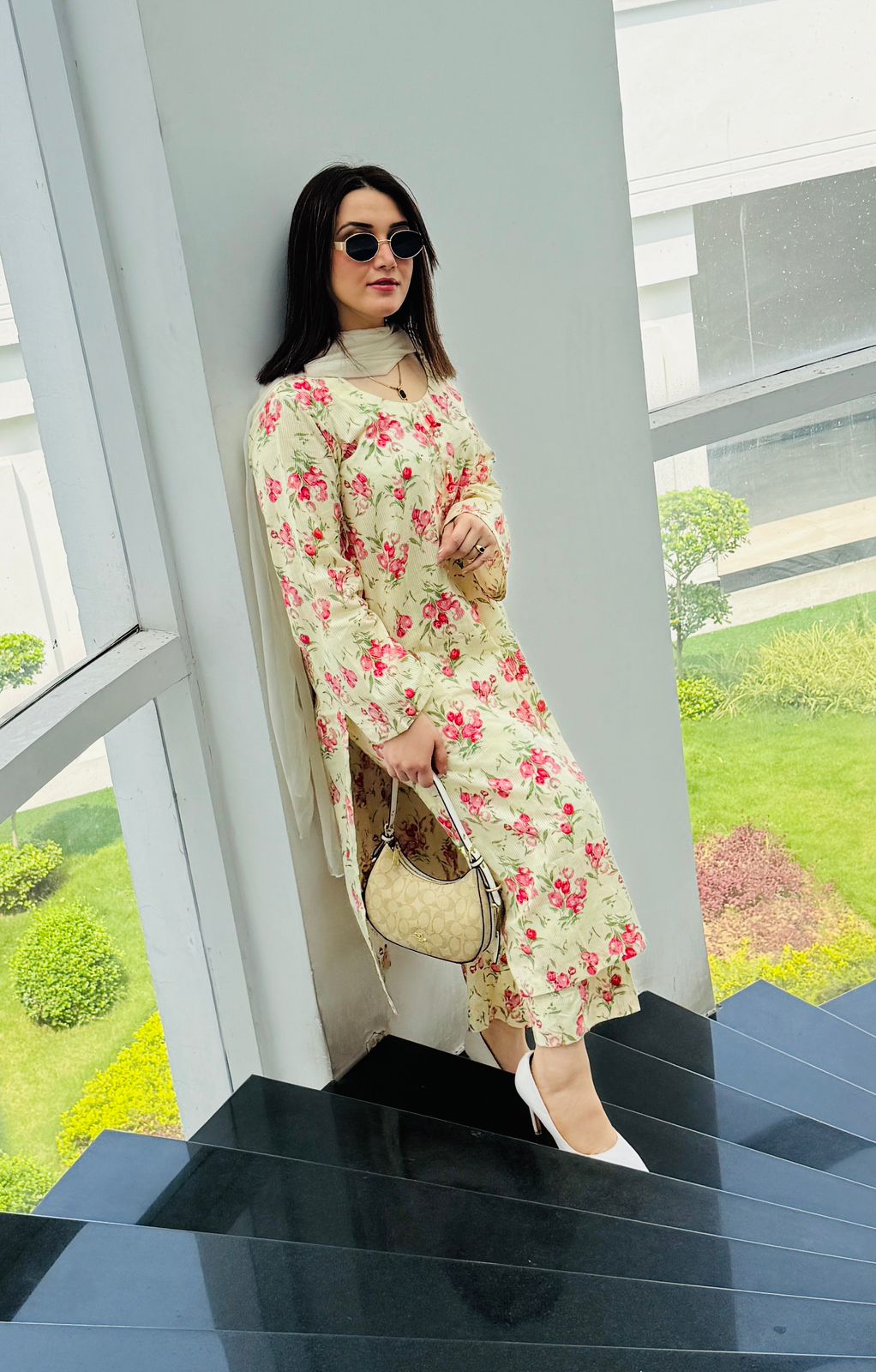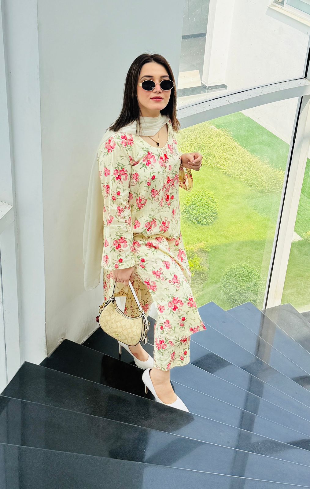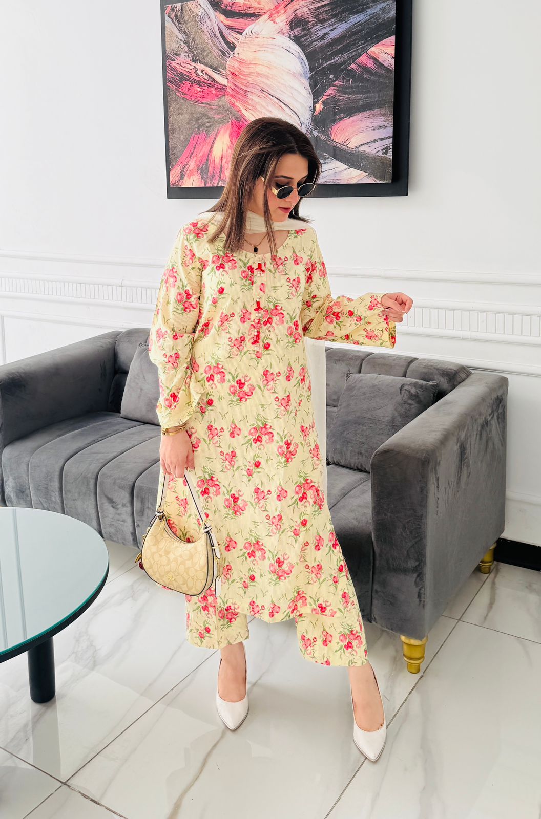 Step out boldly with this vibrant printed lawn shirt and shalwar set, expertly crafted from lightweight Doria lawn fabric for unmatched style and comfort.