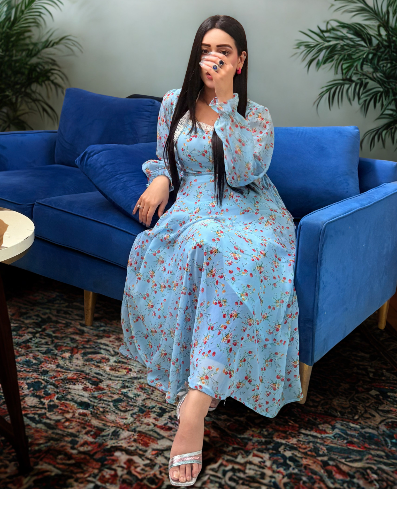 Chiffon Maxi With Lace Under Soft Lining Attatched(1 PC)