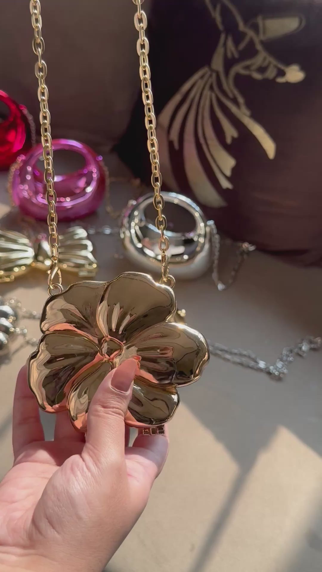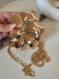 Viral Flower Metallic Clutch with Chain