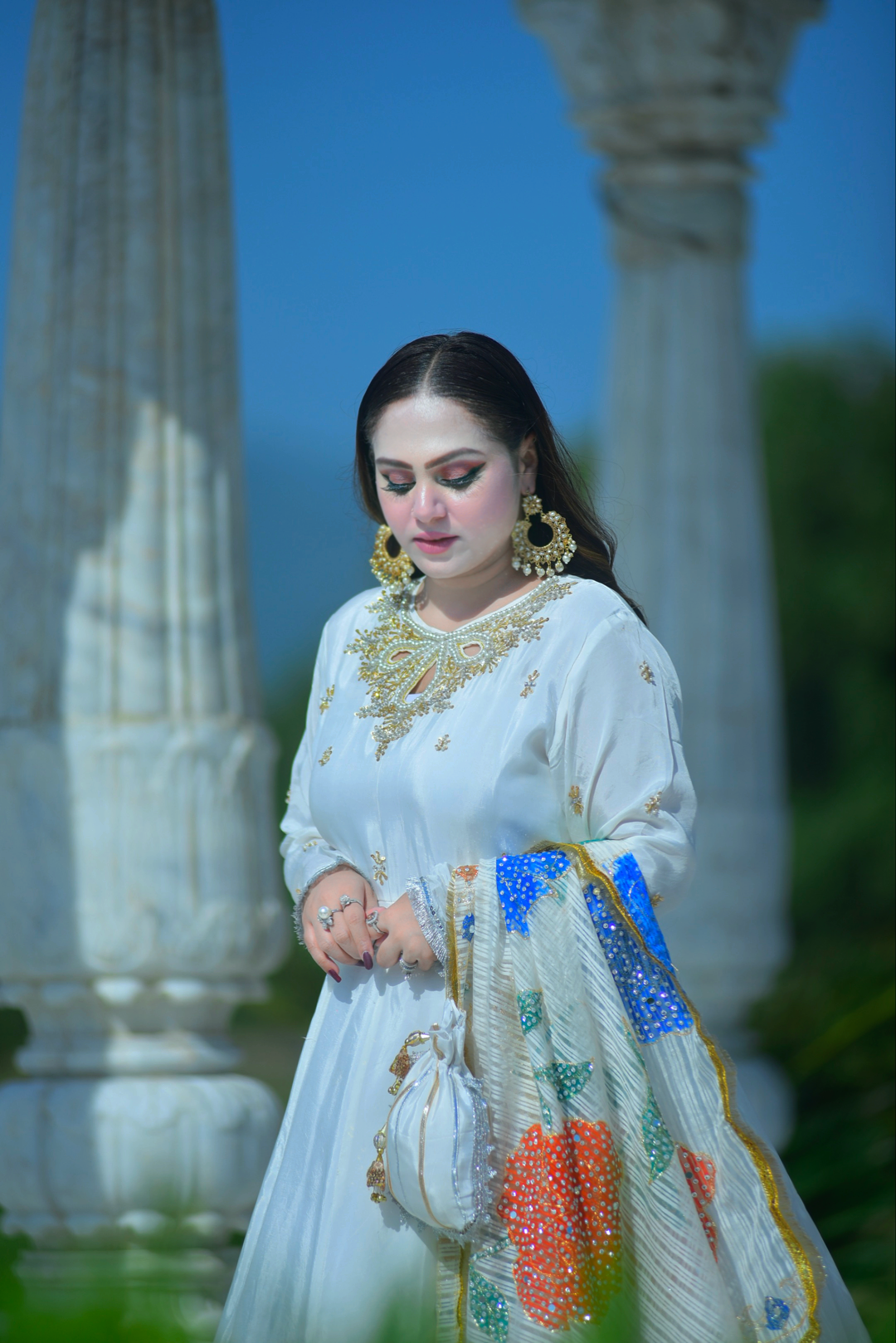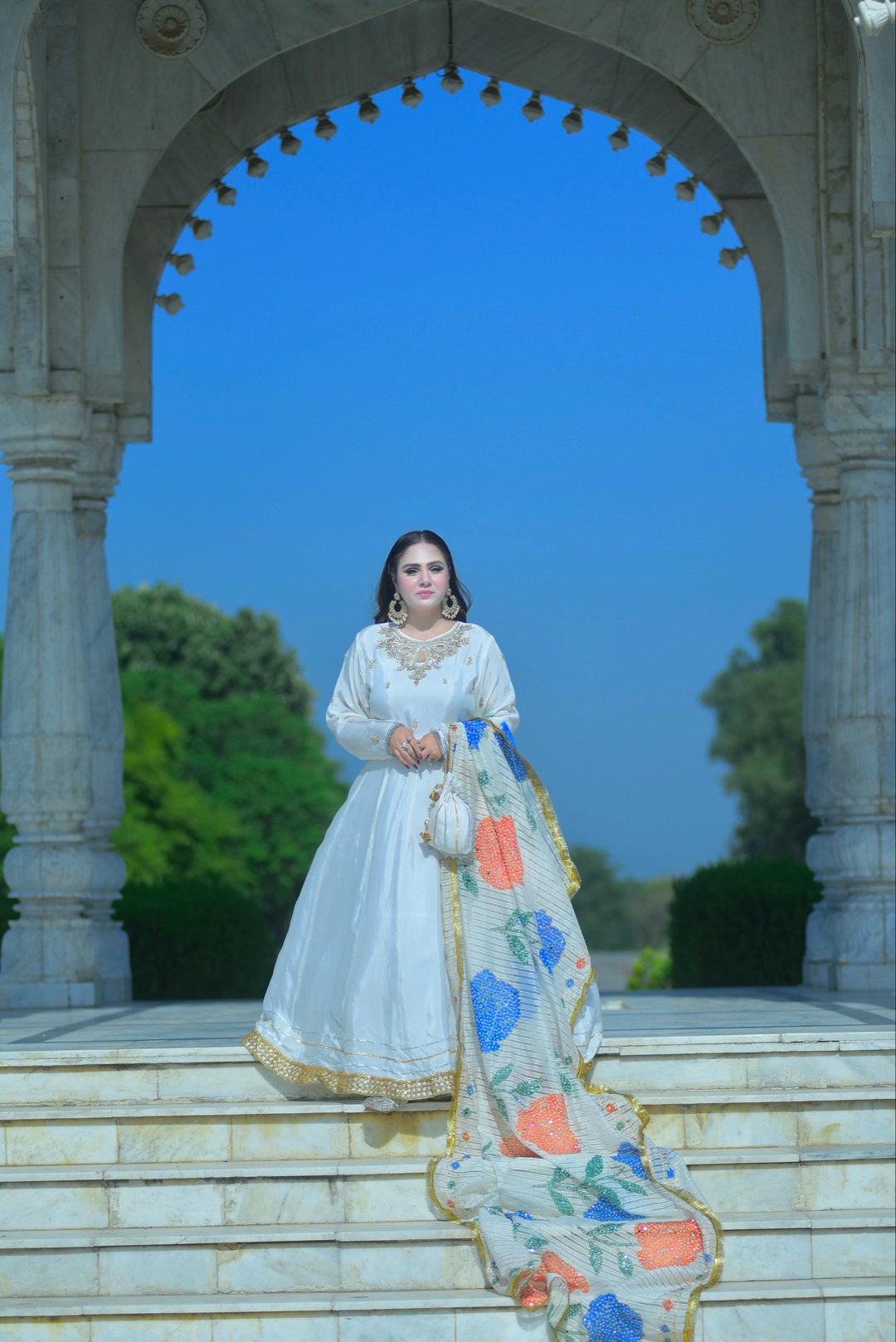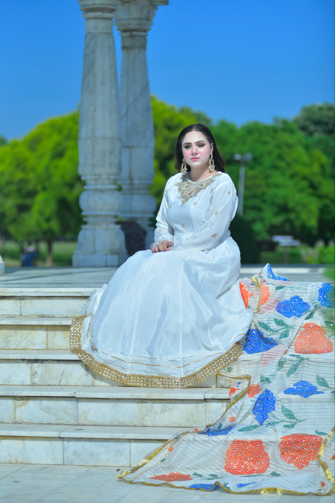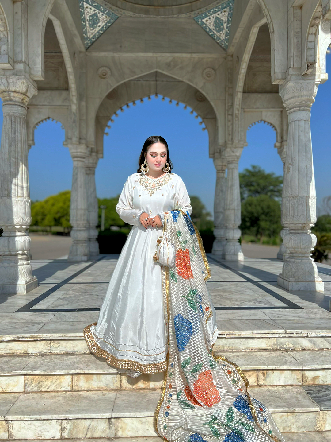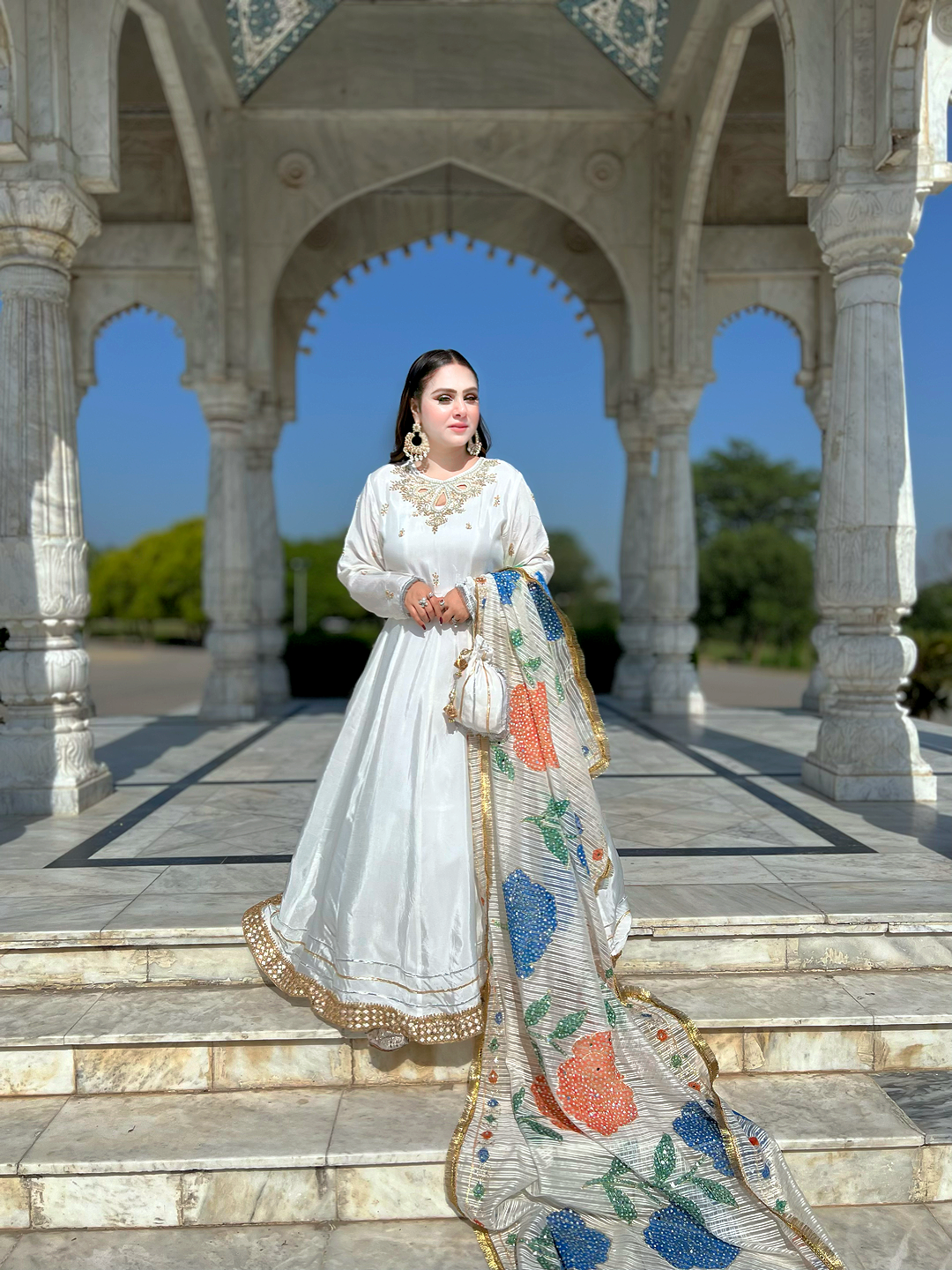 Momina White Rose Maxi
